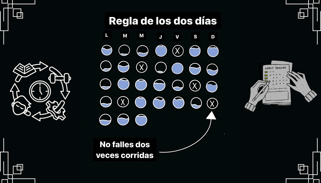 La psicología del hábito muestra que cuando fallas un día y lo corriges al siguiente, tu cerebro lo procesa como un desliz aislado. Pero si fallas dos días seguidos, envías un mensaje muy distinto: “Este hábito no es tan importante”.