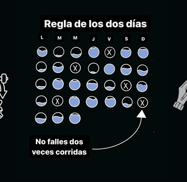 Por eso la persistencia importa más que la perfección. La regla de los dos días te ayuda a entrenar a tu cerebro en un mensaje poderoso: “Yo sigo aquí, incluso después de caer”.
